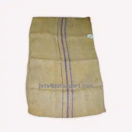 Vegetable Oil Treated (VOT) Binola Twills Jute Bags, Size : 44" x 26.5", Weight : 2.00Lbs, Porter & Shots : 6 x 7, Hemmed at mouth, Overhead Dry Sewn or Herackle Sewn, 3 Blue Stripes, Packed : 300 Pcs per Iron Bound Bale.